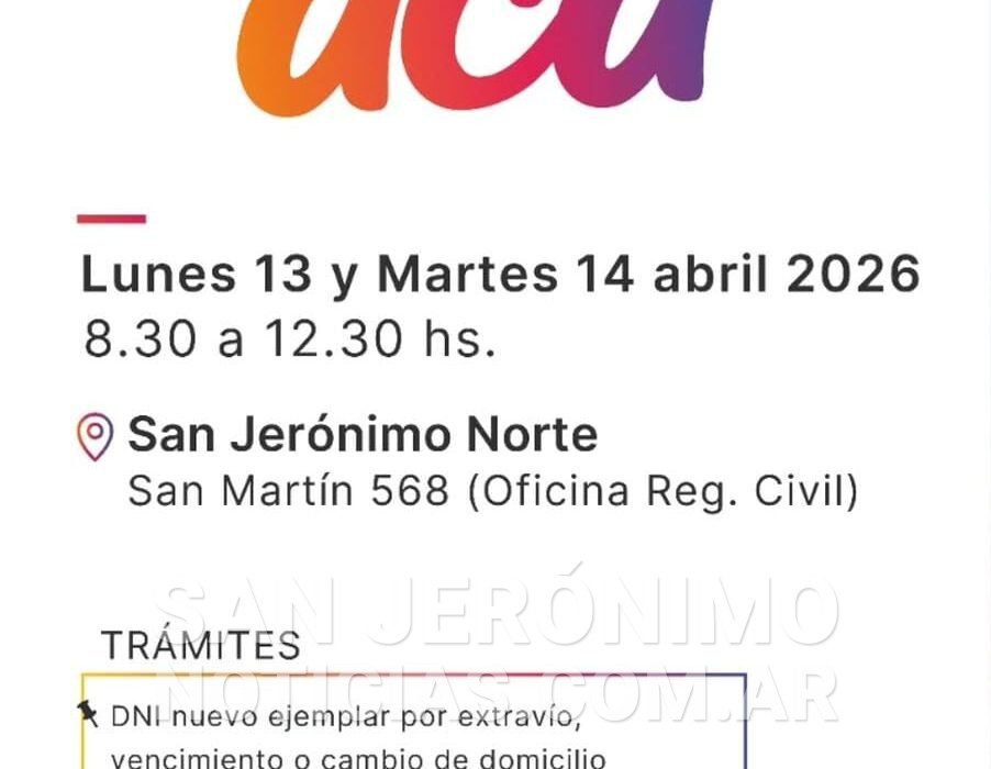 “Tenemos el agrado de comunicarles que gracias a las gestiones realizadas por los concejales de Unidos para Cambiar Santa Fe de San Jerónimo Norte y la diputada provincial Jimena Senn, el lunes 13 y martes 14 de abril llega a San Jerónimo Norte la unidad móvil de Registro Civil”, anunció Federico Salzmann.